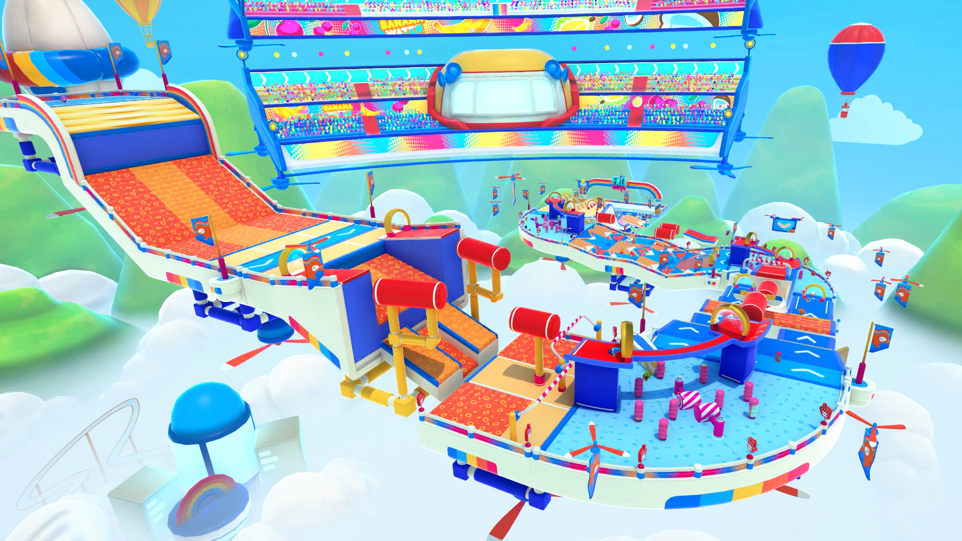 Mediatonic nampanya mengambil inspirasi dari salah satu permainan anak-anak, bounce castle yang sering kita temui dalam membuat maps ini. Lantai dari maps ini akan membuatmu melompat dengan tinggi, dan kamu harus menggunakan lantai tersebut untuk masuk ke dalam lingkaran yang tedapat jauh di atas.