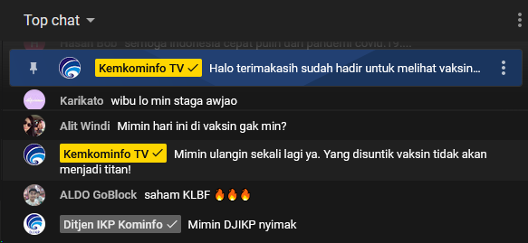 Lalu, respons yang paling menarik justru datang dari akun Kementerian Komunikasi dan Informatika Republik Indonesia (Kemkominfo) di kolom chat siaran langsung yang berada di YouTube. Pasalnya, saking banyaknya komentar netizen terkait perubahan menjadi Titan akibat vaksinasi, akun Kemkominfo justru menegaskan bahwa penyuntikan vaksin enggak akan bikin orang berubah jadi raksasa asal anime tersebut.