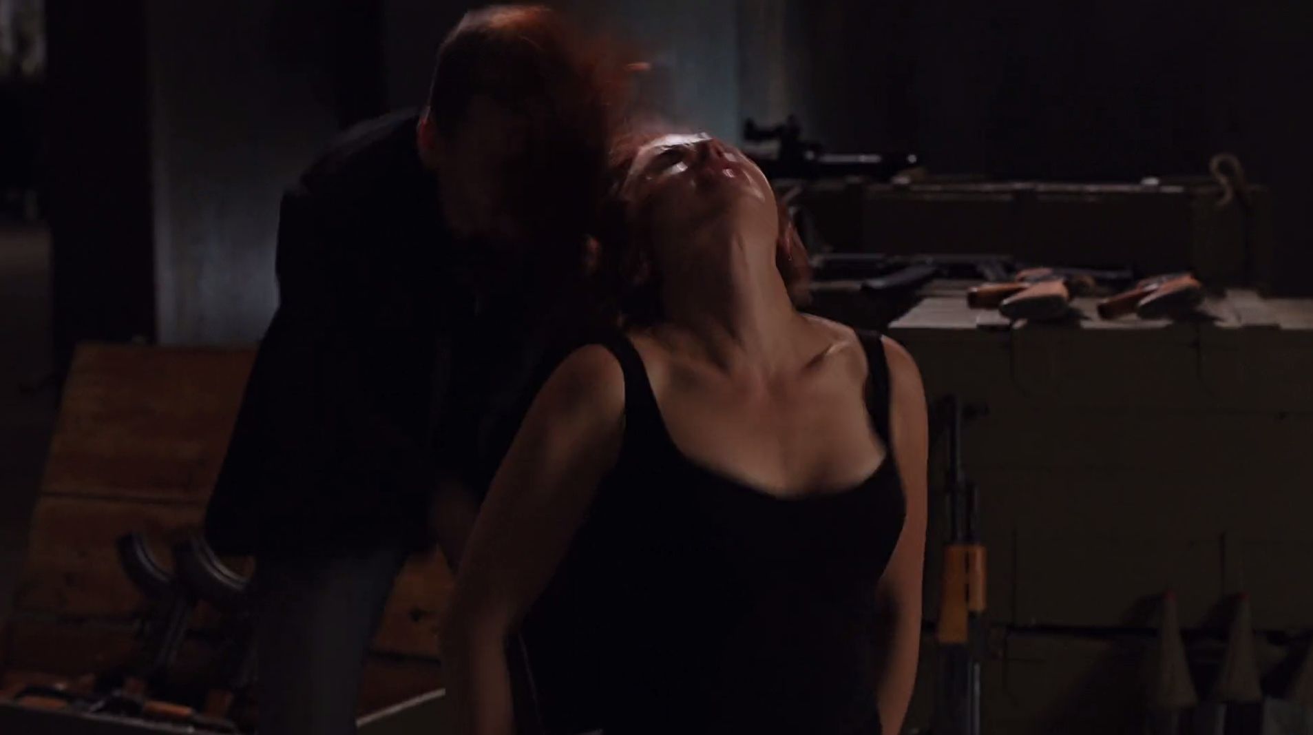 Nah, saat momen pertama Black Widow ingin melepaskan diri dari ikatan di bangku, dia terlihat membenturkan kepalanya ke kriminal yang ada di belakangnya. Namun, kalau kalian lihat secara saksama lagi, sang kriminal hanya terkena kibasan rambut dari Black Widow, bukan terbentur kepalanya.