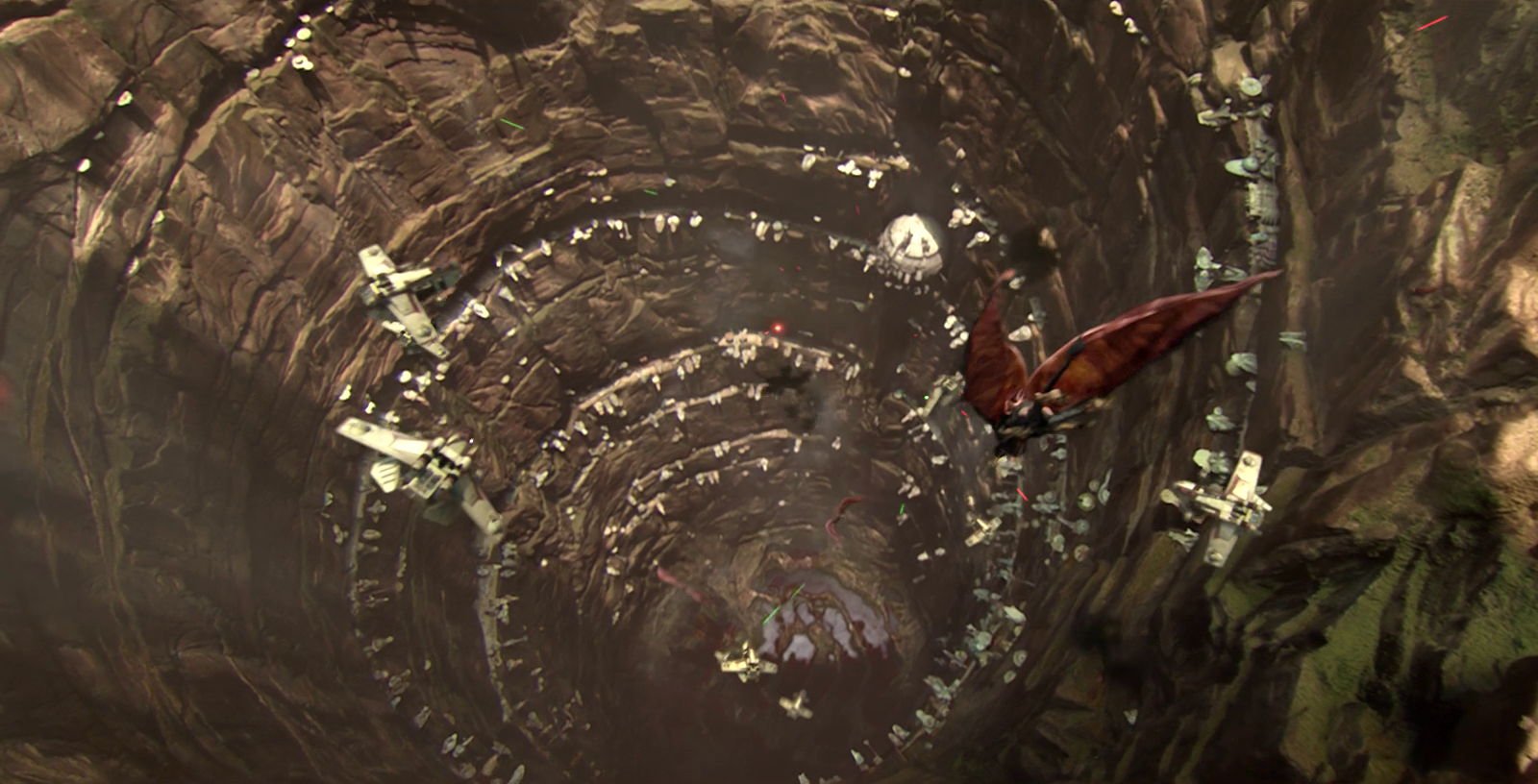 10. Hal yang menarik dari Planet Utapau adalah lokasi pemukimannya yang unik. Meski berada di lubang planet, pemukimannya menarik secara arsitektur.