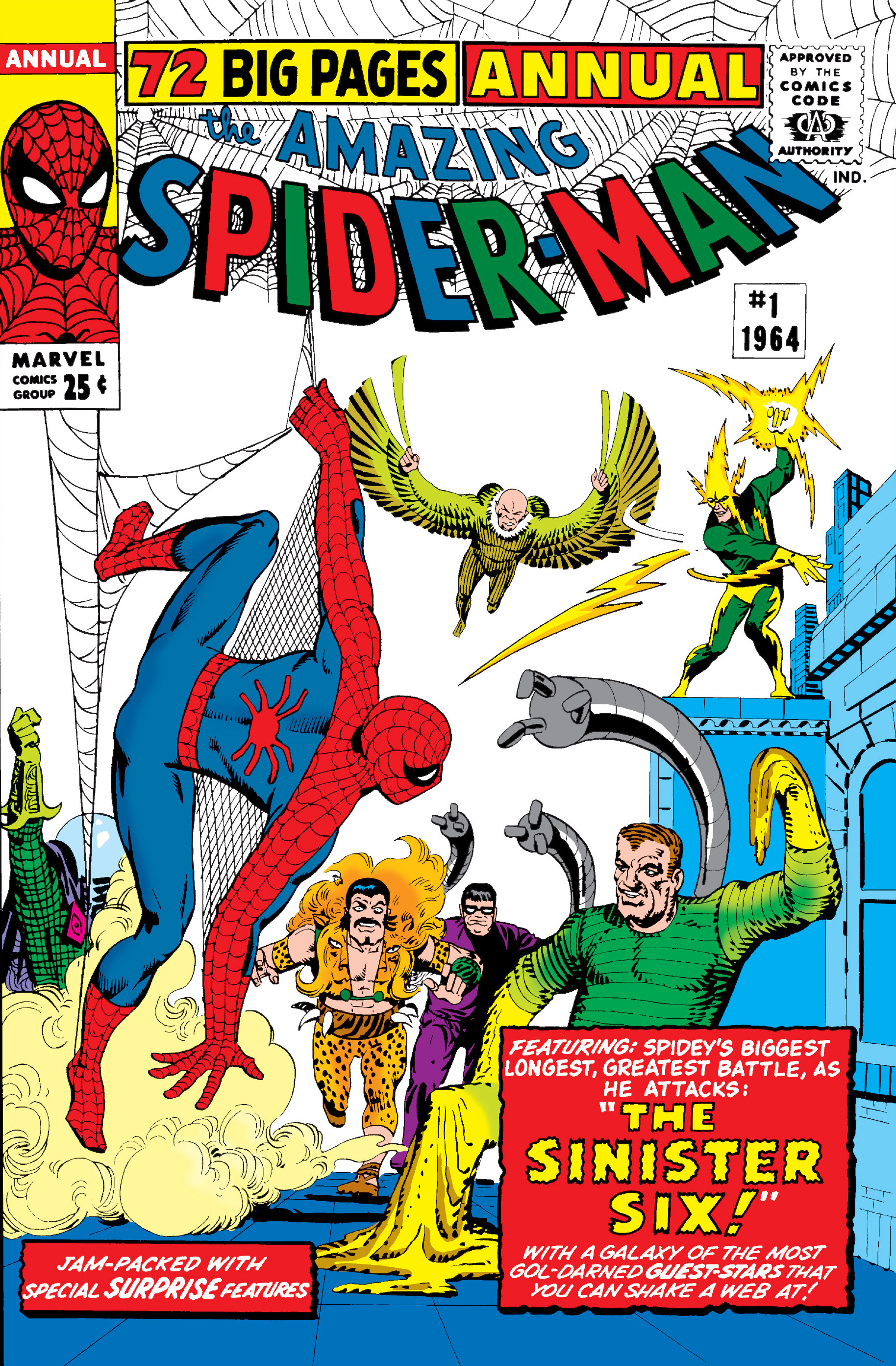 Seandainya komik Amazing Spider-Man Annual #1 rilis lebih awal, The Sinister Six bakal jadi grup supervillain pertama di semesta Marvel. Soalnya, status grup supervillain pertama sudah disandang duluan oleh Masters of Evil yang memulai debutnya di komik The Avengers #6 – Masters of Evil, sebulan sebelum Amazing Spider-Man Annual #1.