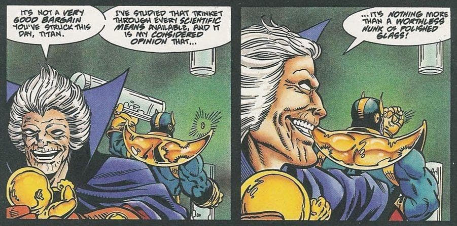 The Collector yang menganggap Runner jauh lebih menarik ketimbang Reality Stones pun dengan begitu saja rela menukarkannya kepada Thanos. Tindakan The Collector ini pun kemudian mengakibatkan kesengsaraan terhadap alam semesta. Sebab, seperti yang kita ketahui, Thanos langsung melancarkan niat jahatnya setelah berhasil mengumpulkan seluruh Infinity Stones.